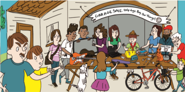 1. In pairs, look at the picture of a garage sale. What is the purpose of a garage sale?