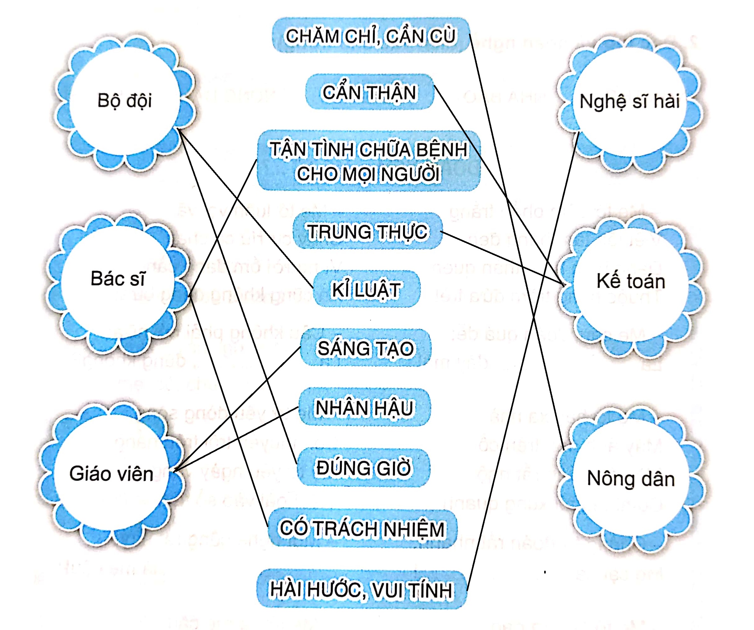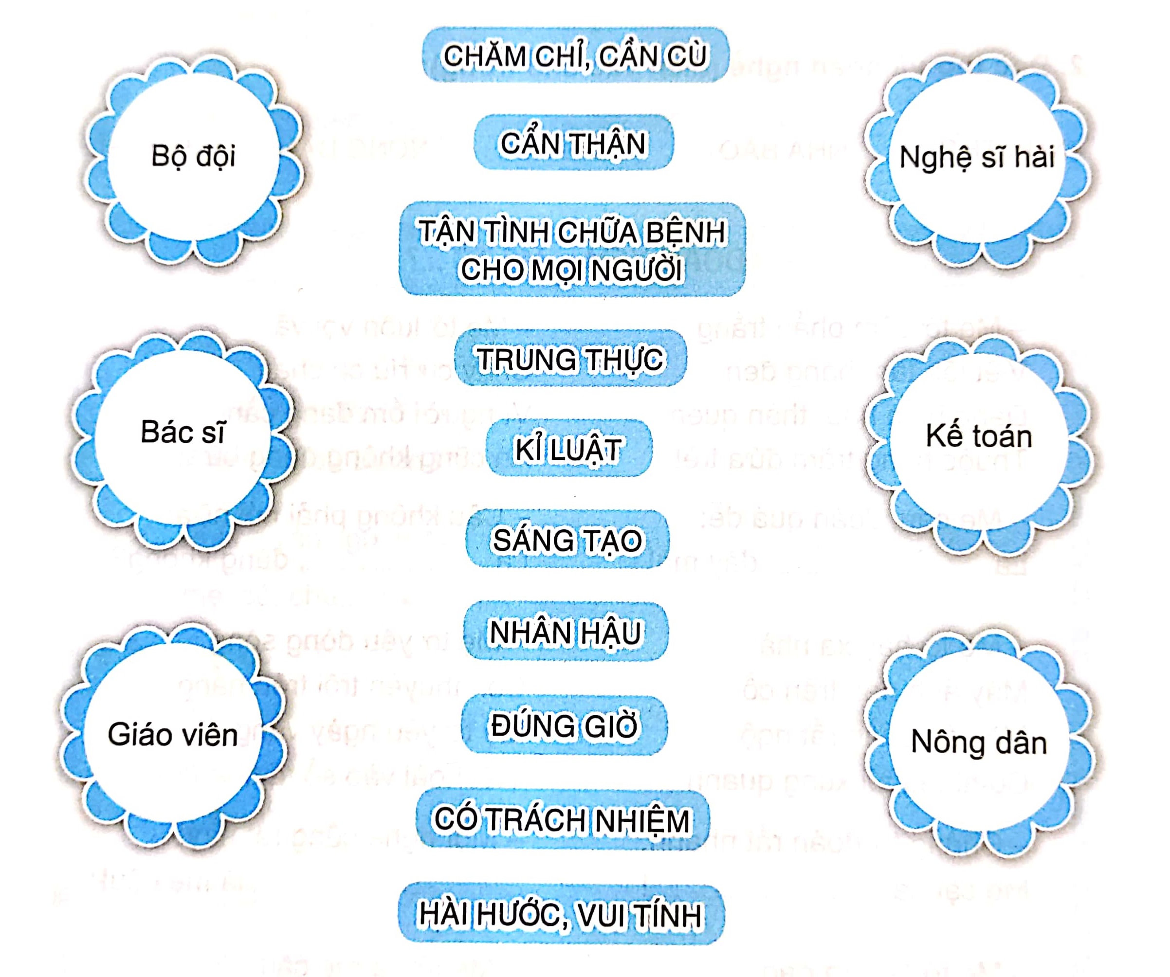 - Đầu tiên, em hãy tìm hiểu về nghề đó, tìm hiểu xem công việc của họ là gì từ đó suy ra những đức tính liên quan đến từng nghề nghiệp.