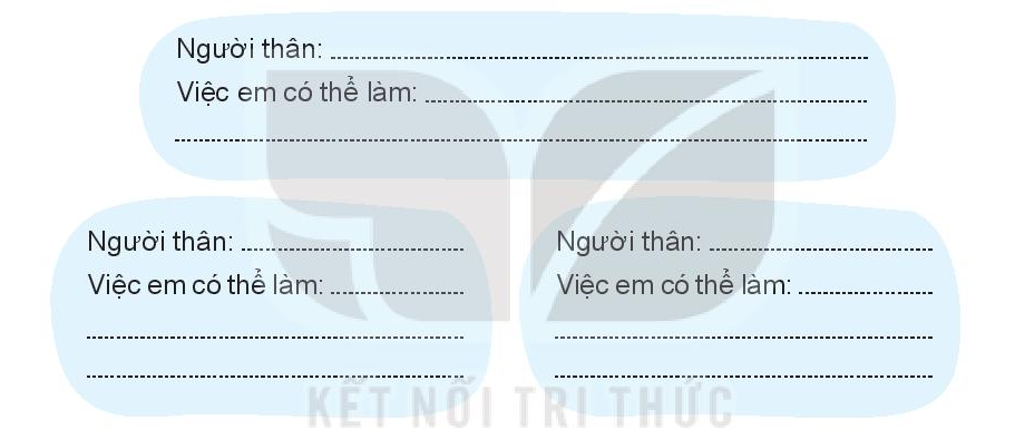 Hãy nhớ lại những việc em đã làm để chăm sóc người thân của mình ( giúp đỡ việc lặt vặt trong nhà, đấm lưng xoa bóp cho bố mẹ, ông bà…)