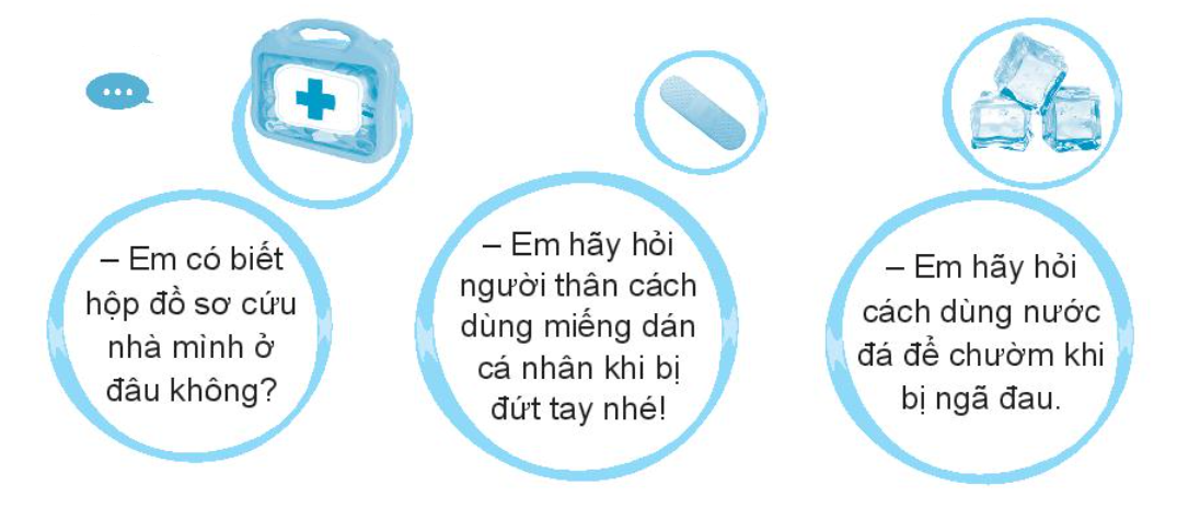 - Hộp sơ cứu nhà em để ở trong tủ thuốc