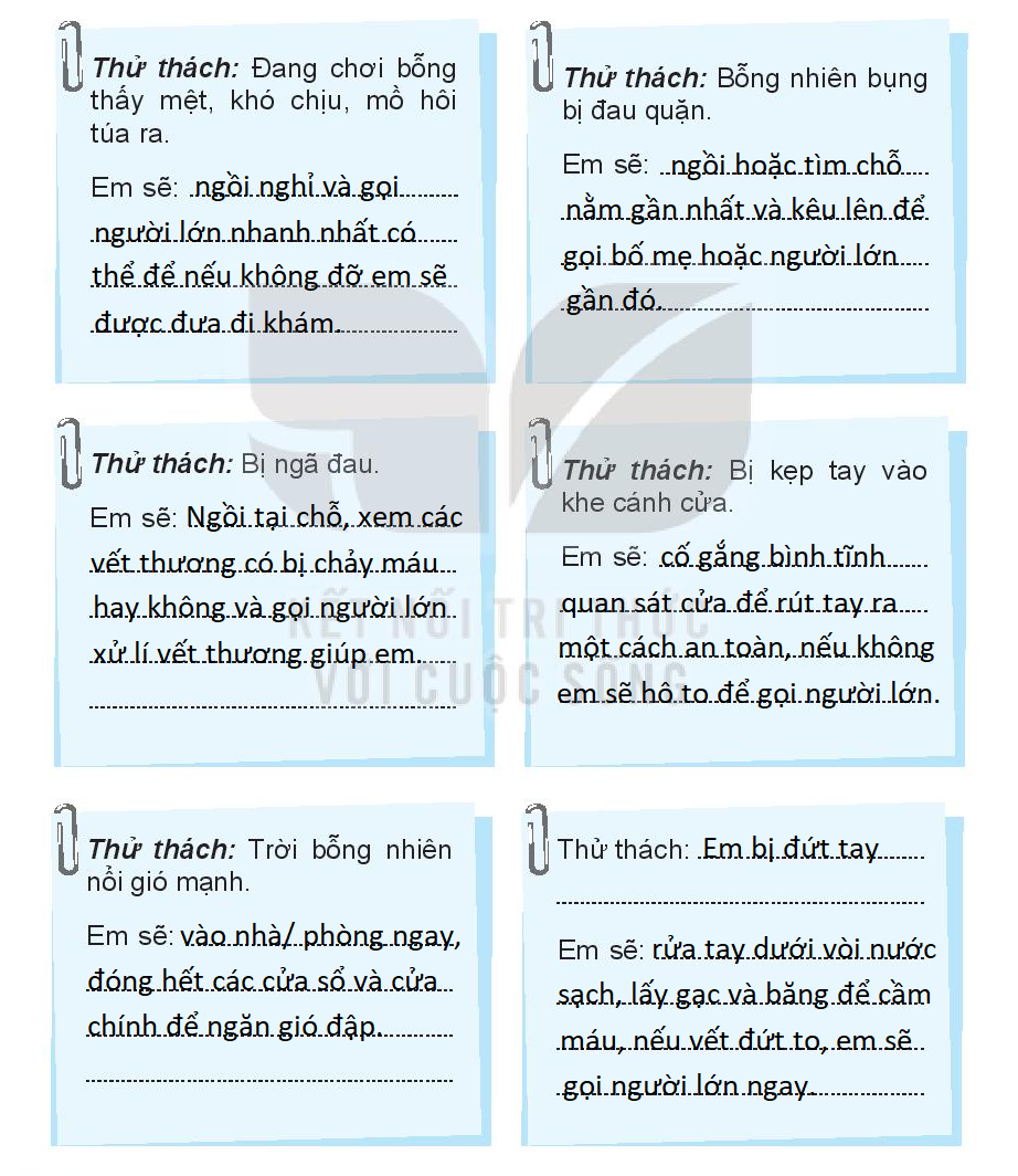 Em hãy hỏi bố mẹ, nguồi thân cach xử lý những tình huống thử thách sau đây: