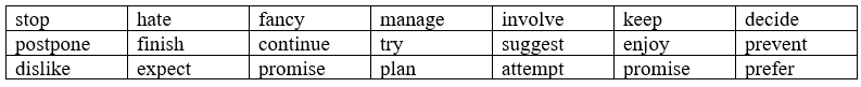 1. Put the verbs into the correct column. Some verbs can go into more than one column. 2. Choose the correct gerund or infinitive form.3. Choose the correct option for each gap in the following passages.