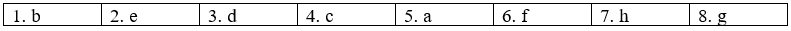 (Ghép các từ 1-8 ở bên trái với nghĩa của chúng từ a-h ở bên phải.)