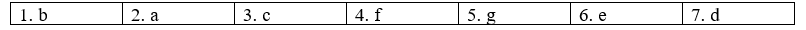 (Nối câu hỏi 1-7 với câu trả lời từ a-g.)