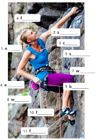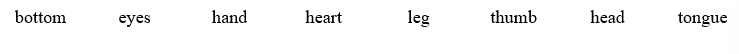 (Viết tên các bộ phận của cơ thể. Chữ cái đầu tiên của mỗi từ được cho sẵn.)