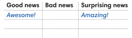 1. Match the parts of the sentences. 2. Make the sentences about giving news. 3. 06 Complete the responses with one word in each gap. Then listen and check. 4. Complete the table with the phrares from Exercise 3. 5. Choose the correct answer.