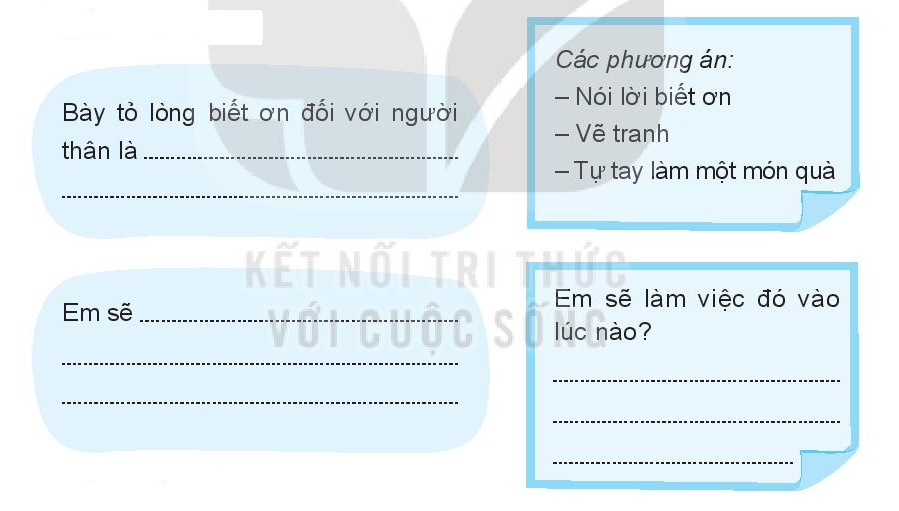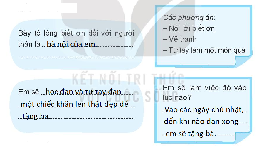 Ghi lại việc em đã làm để bày tỏ lòng biết ơn của mình với người thân ( bố mẹ, ông bà… ), em đã làm việc nó như thế nào?, người thân của em phản ứng ra sao?