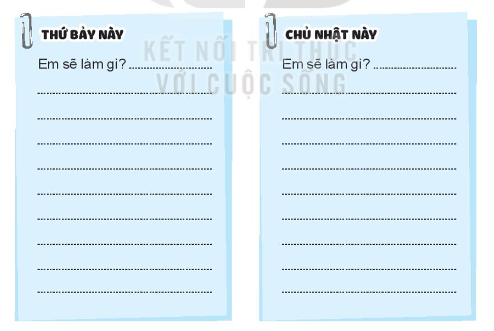 Hãy liệt kê những việc em định làm vào thứ bảy và chủ nhật ( đi thăm ông bà, đi công viên…)