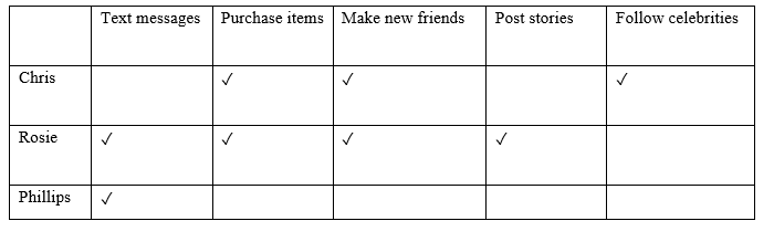 2 Chris uses social media to purchase items and so does Rosie/Rosie does, too.