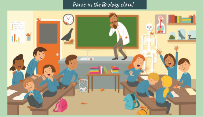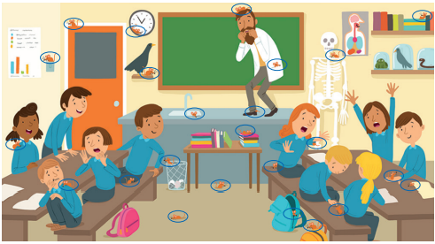 There’s a mouse on the teacher’s head.