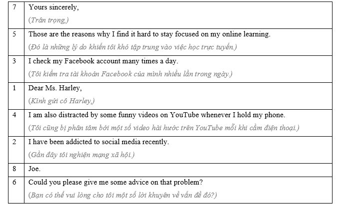 (Sắp xếp lại các câu sau để tạo thành một email.)