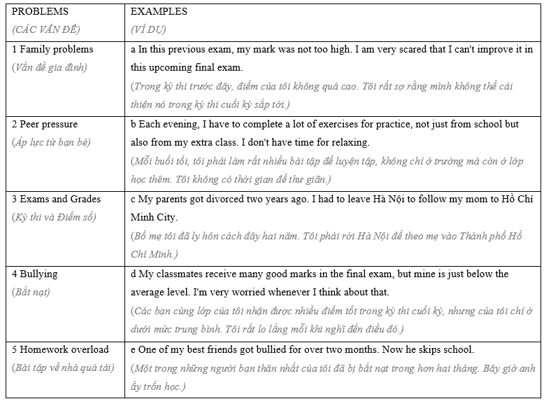 (Viết email cho người bạn thân nhất của bạn để chia sẻ với họ những vấn đề của bạn trong thời niên thiếu (ví dụ: bị bắt nạt, áp lực của cha mẹ, áp lực từ bạn bè, vấn đề gia đình, v.v.) và xin lời khuyên của họ, hãy làm theo các bước sau.)