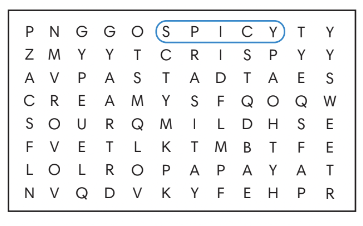 2. Five adjectives to describe a food: sweet, spicy, mild, sour, crispy.