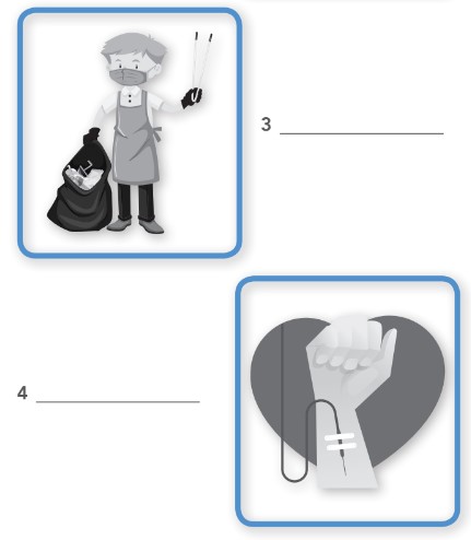 (Viết các cụm từ đúng dưới các bức tranh.)