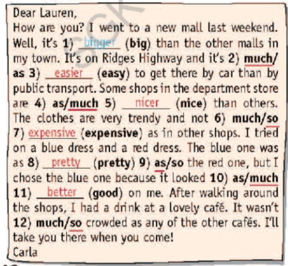 1. Choose the correct option. 2. Complete the sentences using the words in brackets and so/as …. as or much. 3. Put the adjective in brackets into the correct form and choose the correct option. 4. Choose the correct option. 5. Fill in each gap with like, the same as or different from.