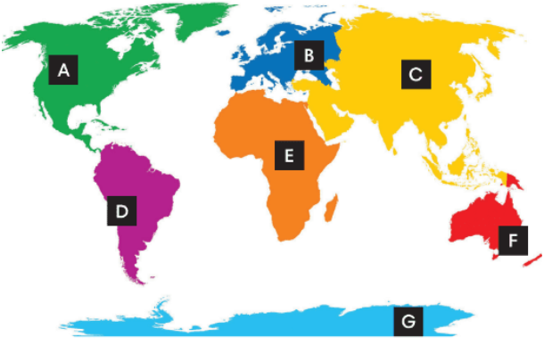 (Ghép A-G trên bản đồ với các lục địa 1-7.)