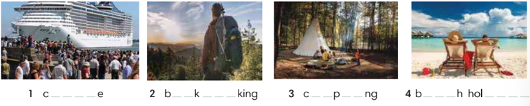 (Điền vào chỗ trống với các chữ cái còn thiếu để tạo thành một từ liên quan đến du lịch.)