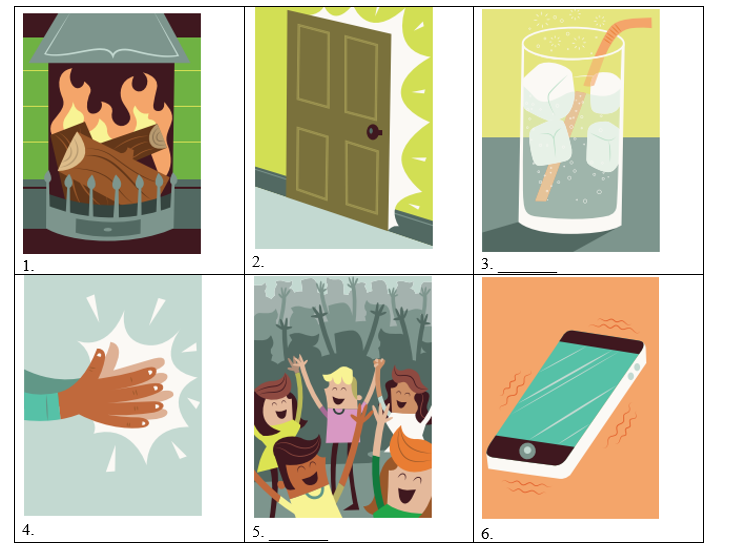 (Nhìn vào các bức tranh và viết ra những âm thanh mà chúng ta nghe được.)