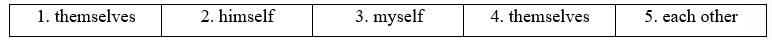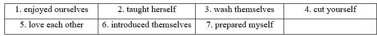 (Hoàn thành các câu với dạng đúng của các từ trong khung bên dưới và đại từ phản thân. Có hai từ bị thừa.)