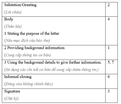 (Đọc lại lá thư và hoàn thành dàn ý sau.)