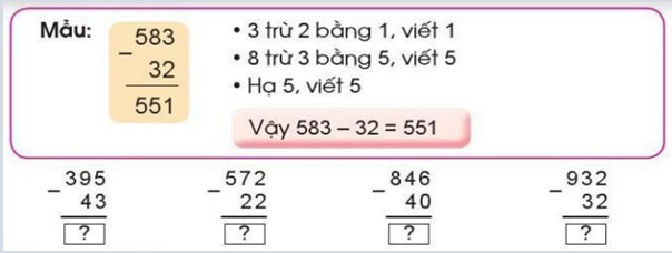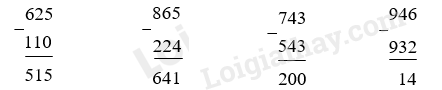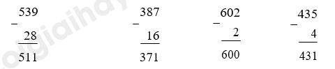 Trừ các chữ số thẳng cột theo theo thứ tự từ phải sang trái.