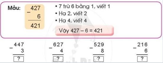 Quan sát ví dụ mẫu rồi trừ từ phải sang trái.