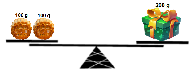 Khối lượng của vật ở đĩa cân bên phải bằng tổng khối lượng hai vật ở đĩa cân bên trái.