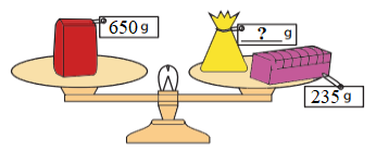 Để tìm cân nặng cùa chiếc túi ta lấy cân nặng của vật trên đĩa cân bên trái trừ đi cân nặng của chiếc túi màu tím trên đĩa cân bên phải.