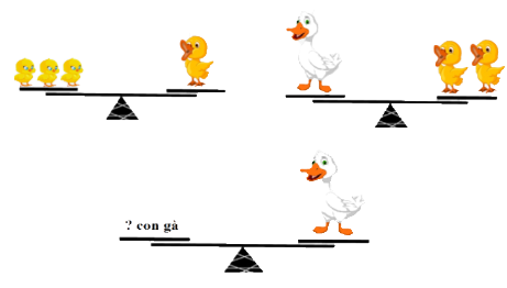Ta thấy cân nặng của vịt con gấp 3 lần cân nặng của gà con.