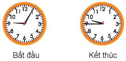 Buổi sáng Chủ nhật, Mai giúp mẹ dọn nhà. Thời gian bắt đầu và kết thúc như sau: