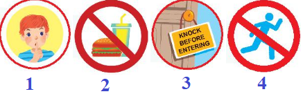 (Nhìn vào các biển báo ở thư viện và hoàn thành câu với should / shouldn’t.)
