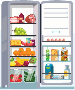 5. Workin pairs. Look at the fridge. Make sentences with the words / phrases provided, using some or any.