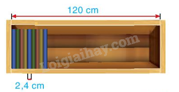 Ngăn đựng sách của một giá sách trong thư viện dài 120 cm (xem hình bên). Người ta dự định xếp các cuốn sách dày khoảng 2,4 cm vào ngăn này. Hỏi ngăn sách đó có thể để được nhiều nhất bao nhiêu cuốn sách như vậy?