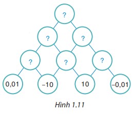 Thay mỗi dấu “?” bằng số thích hợp để hoàn thiện sơ đồ Hình 1.11, biết số trong mỗi ô ở hàng trên bằng tích của hai số trong hai ô kề nó ở hàng dưới.