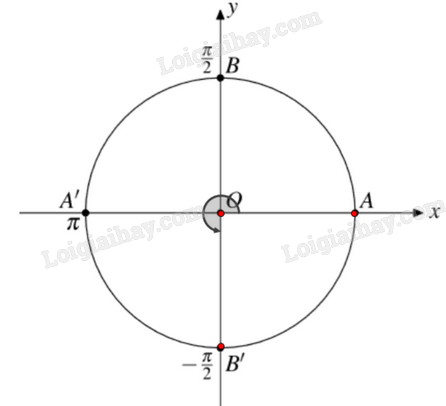 c) Điểm B’ trên đường tròn lượng giác biểu diễn góc lượng giác có số đo \({270^0}\) được xác định như trên hình.