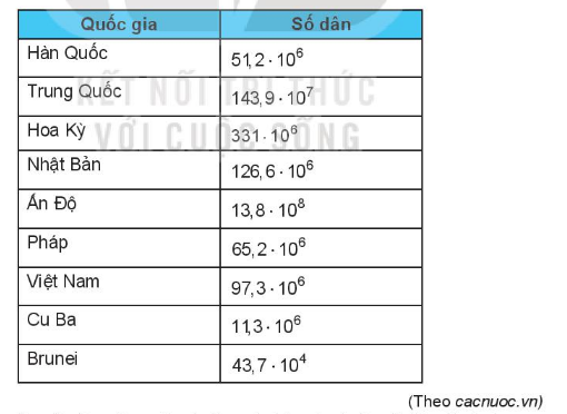 Bảng thống kê dưới đây ước lượng số dân của một số nước tại thời điểm năm 2020.