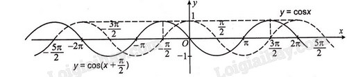Từ đồ thị \(y = \cos {\rm{ }}x\), ta linh hoạt dịch chuyển đồ thị theo yêu cầu đề bài. Vẽ đồ thị \(y = \cos {\rm{ }}x\) bằng nét đứt và vẽ đồ thị trong đề bài bằng nét liền.