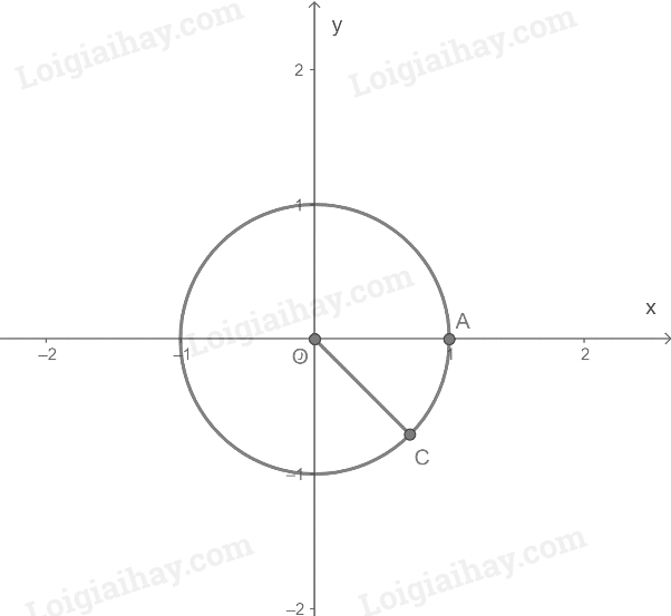 - Đường tròn lượng giác có tâm tại gốc tọa độ, bán kính bằng 1, lấy điểm A(1;0) là gốc của đường tròn.