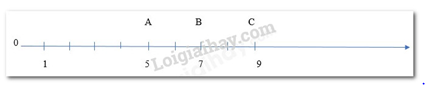 Điểm A biểu diễn số 5, điểm B biểu diễn số 7 và điểm C biểu diễn số 9.