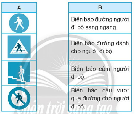 Nối hình biển báo ở cột A phù hợp với ý nghĩa của biển báo ở cột B.