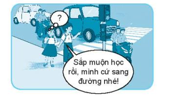 Cách xử lí của em: Em sẽ khuyên bạn không nên qua đường, dù có muộn học thì chúng ta cũng không được vượt đèn đỏ khi đi bộ vì như vậy sẽ nguy hiểm và có thể gây tai nạn.