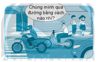 Cách xử lí của em: Em sẽ chỉ bạn đi qua đường trên vạch trắng dành cho người đi bộ. Nếu không sang được thì em sẽ nhờ người lớn dắt em sang đường.