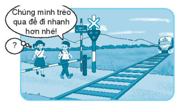 Cách xử lí của em: Em sẽ ngăn bạn lại và không cho bạn trèo qua đường sắt, chúng ta cần tuân thủ các quy tắc đi bộ qua đường sắt: quan sát tàu hỏa, tuân thủ tín hiệu đèn dừng lại và không được vượt hoặc leo trèo, chui qua rào chắn.