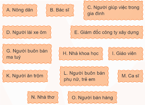 Những người là người lao động là: A, B, C, D, E, H, I, M, N, O.