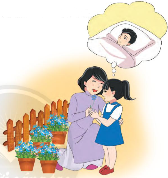 Quan sát tranh và cho biết bạn nhỏ đang nghĩ về ai.