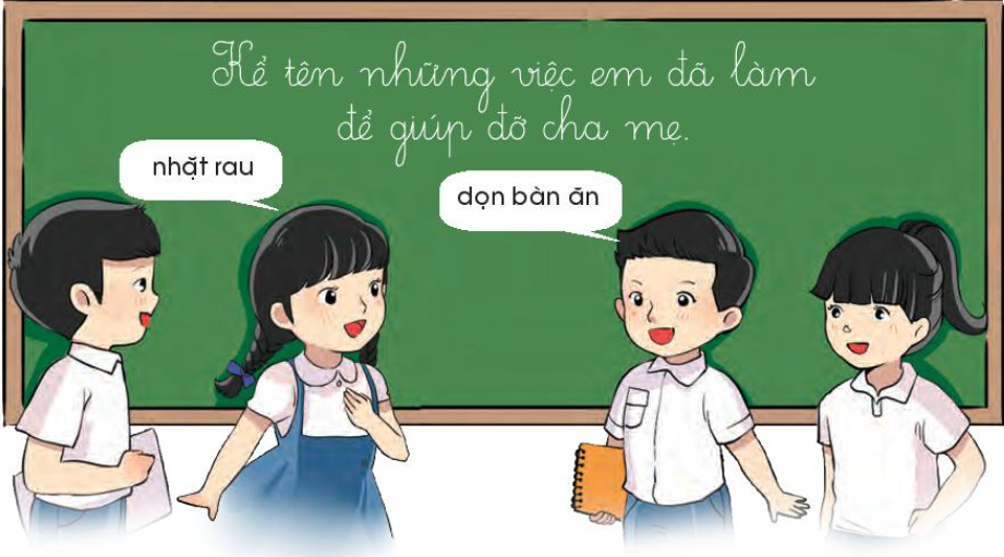 Ở nhà, em đã quét nhà, trông em, phụ mẹ làm việc nhà, tưới cây,…
