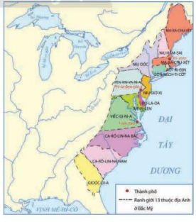 Những vùng có màu là nơi diễn ra cuộc Chiến tranh giành độc lập của 13 thuộc địa Anh ở Bắc Mĩ.