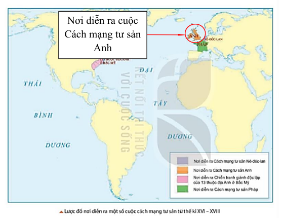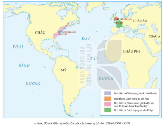 - Bước 2. Quan sát lược đồ nơi diễn ra một số cuộc cách mạng tư sản từ thế kỉ.