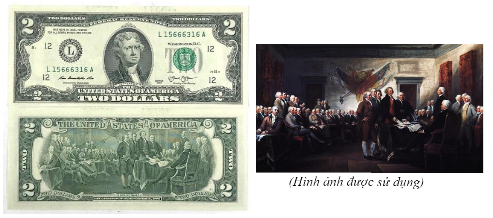 Tìm hiểu thông tin từ sách, báo, internet và cho biết: Mặt sau của đồng 2 đô-la Mỹ (USD) in hình ảnh của sự kiện nào trong Chiến tranh giành độc lập của 13 thuộc địa Anh ở Bắc Mỹ? Ý nghĩa của điều này là gì?