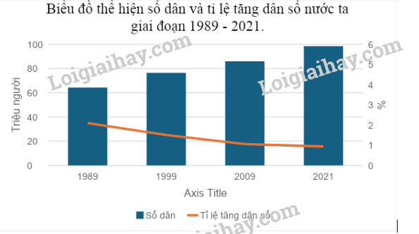 - Vẽ biểu đồ thể hiện số dân và tỉ lệ tăng dân số nước ta giai đoạn 1989 - 2021.